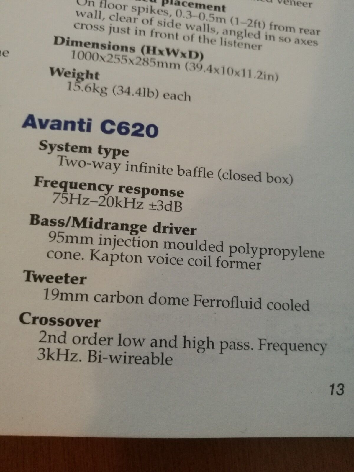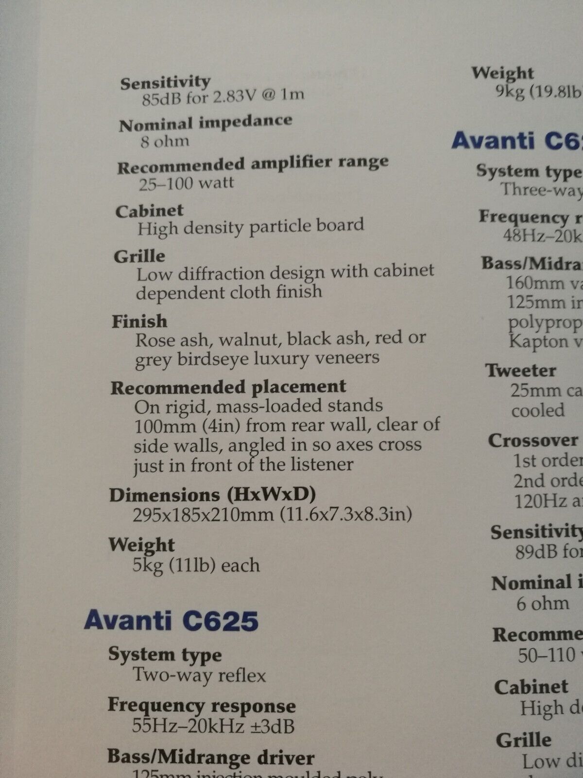 C620 Avanti; c6-20 è un diffusore audio completo di tipo baffle infinito appositamente progettato per piccoli ambienti di ascolto. La nuovissima unità di Rogers Jazz utilizza un telaio in fusione originale combinato con un diaframma iniettato e il woofer realizzato con esso fornisce bassi solidi. Il tweeter da 19 mm è realizzato in fibra di carbonio e strettamente combinato con l'unità dei bassi. La rete crossover è fissata sulla piastra inferiore in fibra di vetro e vengono utilizzati cavi di alta qualità per collegare le unità e i terminali per ottenere le migliori prestazioni audio.