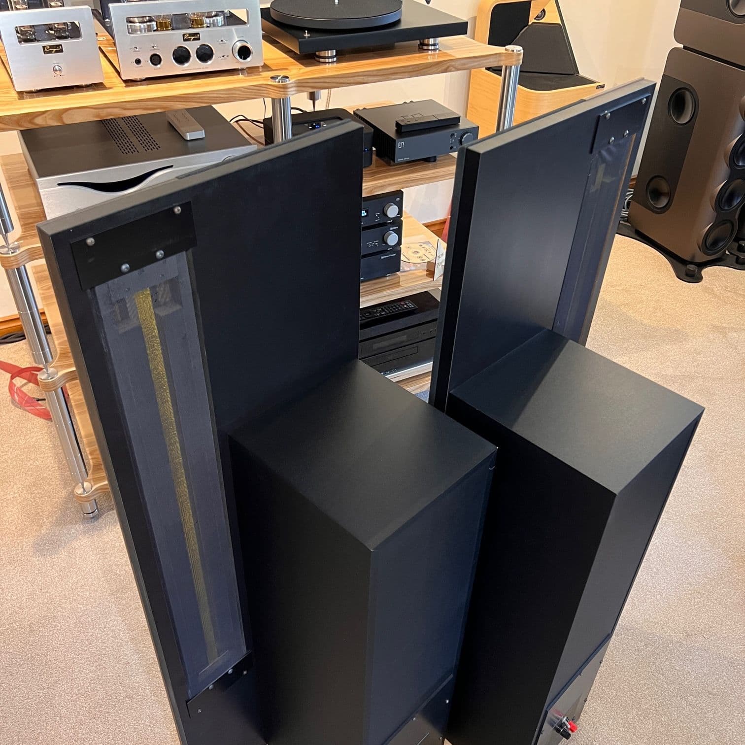 Questa casse sono un po' ostiche in termini di posizionamento e pilotaggio, ma una volta raggiunto un equilibrio sono un pianeta diverso rispetto a dei diffusori dinamici classici: velocità nei transienti incredibile, che rende molto realistico il messaggio sonoro. Una grande fetta di segnale è riprodotto dallo nastro rendendo coerenti le note e le loro armoniche, nessun crossover, nessuna rotazione di fase. Non hanno nessuna timbrica specifica per questo le voci sono semplicemente naturali, mai aspre oltre al messaggio racchiuso nella registrazione, palcoscenico di una tridimensionalità incredibile che va oltre le pareti di fondo, il soffitto e i muri perimetrali.