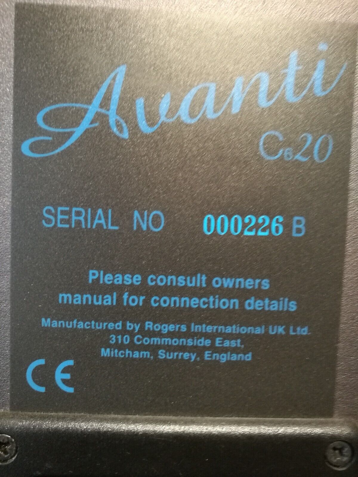 C620 Avanti; c6-20 è un diffusore audio completo di tipo baffle infinito appositamente progettato per piccoli ambienti di ascolto. La nuovissima unità di Rogers Jazz utilizza un telaio in fusione originale combinato con un diaframma iniettato e il woofer realizzato con esso fornisce bassi solidi. Il tweeter da 19 mm è realizzato in fibra di carbonio e strettamente combinato con l'unità dei bassi. La rete crossover è fissata sulla piastra inferiore in fibra di vetro e vengono utilizzati cavi di alta qualità per collegare le unità e i terminali per ottenere le migliori prestazioni audio.