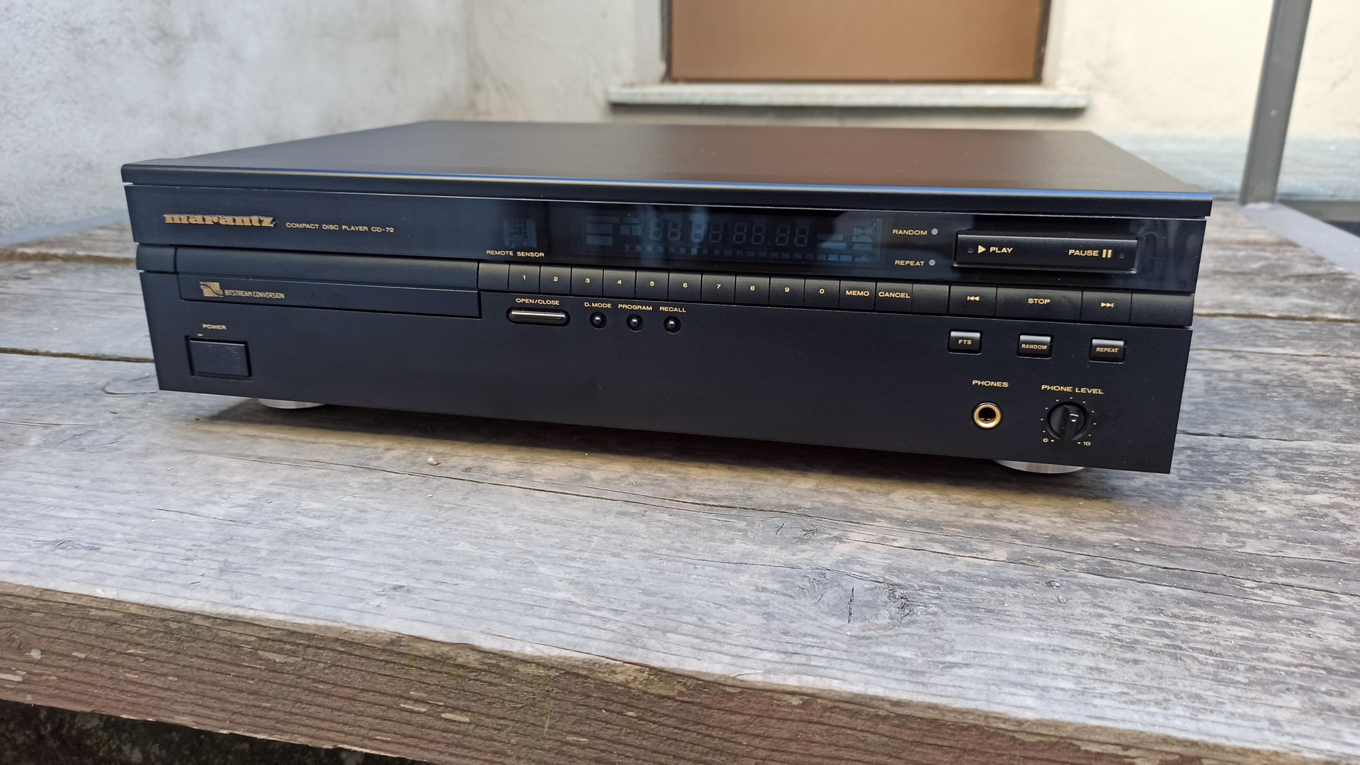 Lettore CD Marantz CD-72 per audiofili, nella finitura nera. Il Marantz CD-72 รจ dotato di pannelli laterali in ZAMAC Marantz e del telecomando originale.